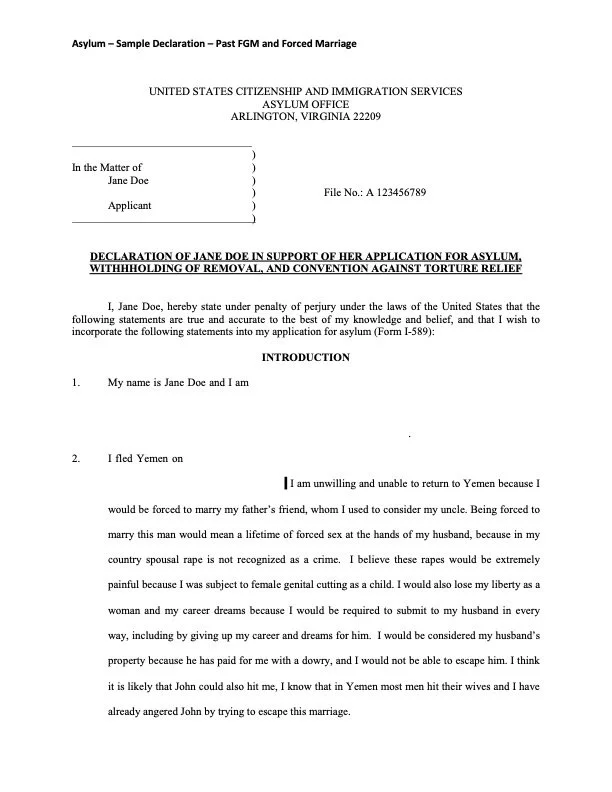 Spanish translation /declaration forms I-589. Traduccion de la declaracion de el formulario I-589 en Espanol.